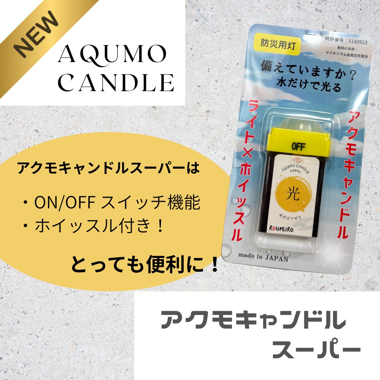 水だけで光る携帯防災~AQUMO CANDLE SUPER~